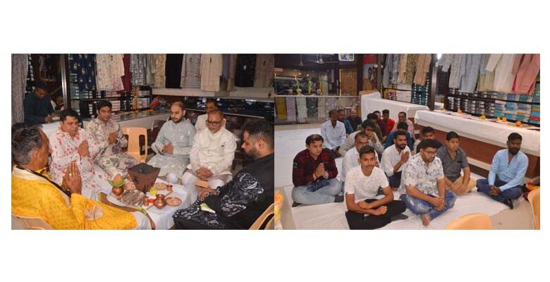 अमरावती- विदर्भ विख्यात कपडा शोरूम आराधना में लक्ष्मीपूजन और दीप पूजन करते हबलानी बंधु.