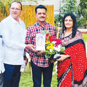 अमरावती/दि.19- पुलिस आयुक्त रहे नवीनचंद्र रेड्डी और उनकी पत्नी वाणी रेड्डी को अमरावती से नागपुर स्थानांतरित होने उपलक्ष्य स्मृतिचिन्ह और पुष्पगुच्छ देकर विदा करते युवा स्वाभिमान पार्टी के शहर जिलाध्यक्ष संजय हिंगासपुरे.