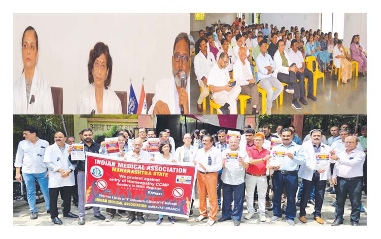 अमरावती/ दि. 18-इंडियन मेडिकल असो. आईएमए में सीसीएमपी मुद्दे पर आखिरकार अपना रूख कडा करते हुए आज 18 सितंबर को एक दिवसीय सांकेतिक हडताल सफल रहने का दावा कर कहा कि केवल इमरजेंसी सेवा छोडकर सभी अस्पताल और क्लीनिक बंद रहे. अमरावती आयएमए की अध्यक्ष डॉ. अलका कुथे, सचिव डॉ. राधा सावदेकर और पूर्व प्रदेशाध्यक्षव डॉ. दिनेश ठाकरे ने आज दोपहर आयएमए के कैम्प रोड स्थित भवन में निषेध सभा को संबोधित किया. जिसमें आगे राज्य आयएमए से आनेवाले निर्देश के अनुसार आंदोलन तीव्र करने की बात कही गई.