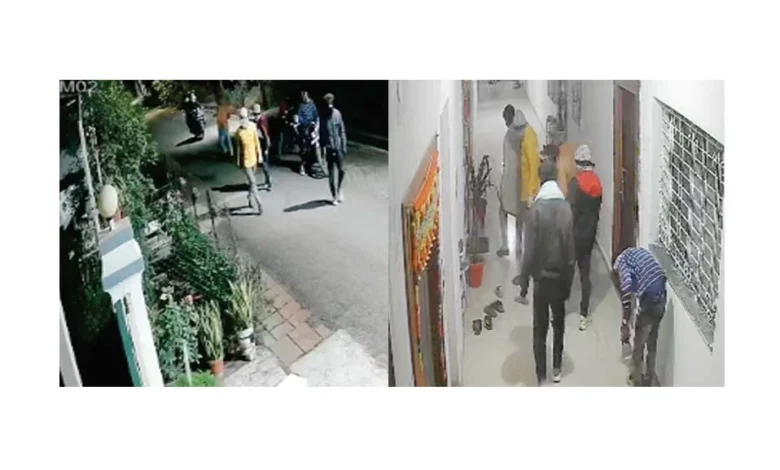 20 फरवरी को तडके 2.14 बजे के दौरान 3 दुपहिया से 9 सदस्योंवाला एक गिरोह सीसीटीवी में कैद हुआ हैं. इसमें पीला शर्ट पहना एक युवक देवी अपार्टमेंट के फ्लैट का दरवाजा तोडता हुआ तथा उसी अपार्टमेंट में घुसे 2 से 4 सदस्य भी 2.14 से 2.17 बजे के दौरान हाथ में टॉमी लेकर घुमते हुए दिखाई देते हैं. दोनों सीसीटीवी फुटेज के चोरों के गिरोह एक ही रहने की जानकारी पुलिस ने दी.