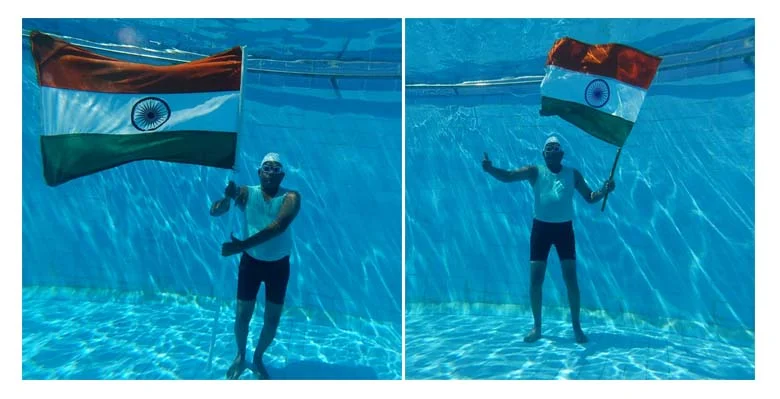 11 फीट पानी के नीचे 1 मिनट 22 सेकंड तक लहराया तिरंगा!