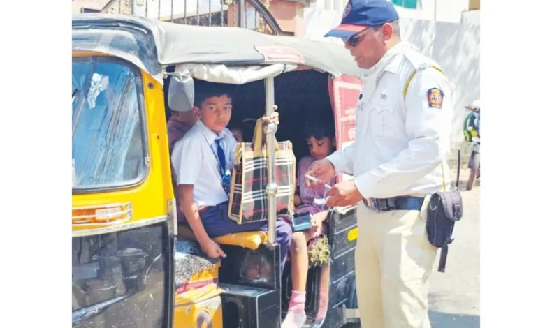 बच्चों को ले जाने वाली वैन, बस, रिक्शा की जांच
