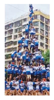 10 थर वाला मानव पिरामिड रचकर फोडी दहीहांडी