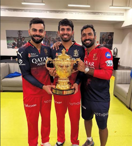 अमरावती/दि.4- मूलरूप से अमरावती केे रहाटगांव निवासी अंतर्राष्ट्रीय क्रिकेटर जीतेश शर्मा ने अपने समाज माध्यम एकाउंट पर देश को दिग्गज क्रिकेटर विराट कोहली और दिनेश कार्तिक के साथ आयपीएल ट्राफी संग फोटो शेयर की है. साथ ही अपनी भावनाएं भी व्यक्त की. जीतेश शर्मा ने लिखा कि विराट भाई दाएं और डीके बायी ओर खडे हैं. ट्राफी के साथ यह क्षण अनमोल है, अविस्मरणीय है. जीतेश ने देखा कि दो गेंदों पर 6 रनों की आवश्यकता रहने पर छक्का जडने का इस सीजन का क्षण भी वे कभी नहीं भूलेंगे. बता दें कि जीतेश की टीम आरसीबी ने गत रात पहली बार आयपीएल ट्राफी जीतीं.