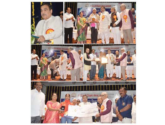 अमरावती– नवनिर्वाचित विधायक संजय खोडके का शिवाजी शिक्षा संस्था के समारोह में स्नेहिल सत्कार करते केन्द्रीय मंत्री नितिन गडकरी. उसी प्रकार अन्य चित्रों में सर्वश्रेष्ठ महिला किसान का पुरस्कार जीतनेवाली का सत्कार करते गडकरी. राष्ट्रीय खेलों में अमरावती का परचम लहराने वाली दीप्ती कालमेघ का भी इस समय केन्द्रीय मंत्री ने सत्कार किया. संजय खोडके अपनी सर्वपरिचित विनम्रता का परिचय देते हुए सत्कार के समय वरिष्ठ नेता गडकरी के पैर छूना नहीं भूले.