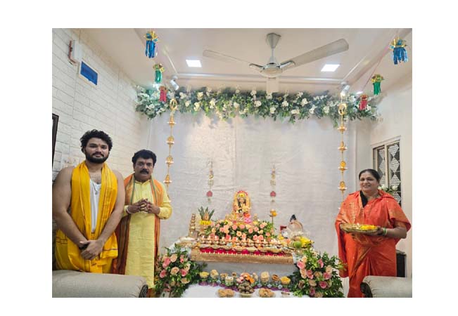अमरावती– बीजेपी जिलाध्यक्ष रविराज देशमुख परिवार के साथ उत्साह और श्रध्दा से लक्ष्मी पूजन करते हुए.