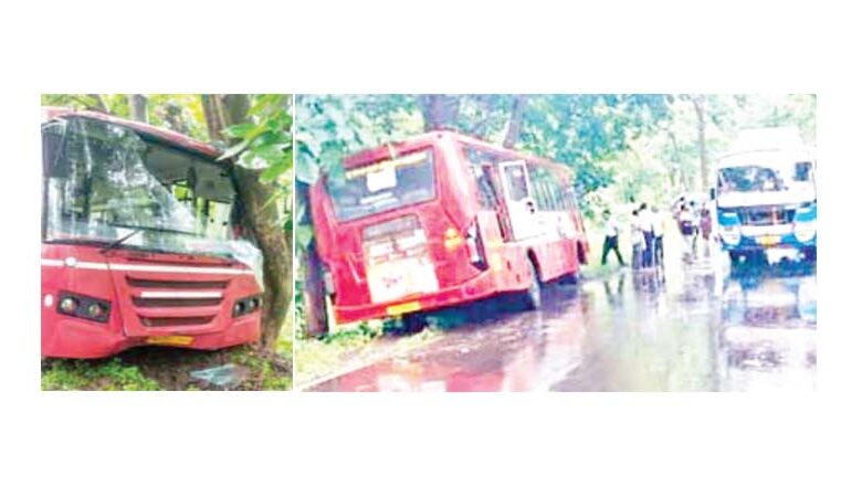 सामने से आ रहे वाहन को रास्ता देने के दौरान चालक का बस से छूटा नियंत्रण