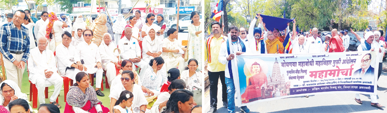 अमरावती/दि.30 – बिहार के बोधगया स्थित महाबोधी महाविहार को भगवान गौतम बुद्ध का पवित्र स्थल एवं ऐतिहासिक धरोहर माना जाता है. जो समूचे विश्व में बसे बौद्ध मतावलंबियों के लिए श्रद्धास्थल है. परंतु इस महाविहार का प्रशासन व प्रबंधन विगत कई वर्षों से गैर बौद्धों के नियंत्रण में है. जिसे तुरंत बदलते हुए महाबोधी महाविहार का प्रशासन बौद्ध धर्मगुरुओं व भिक्खुओं को सौंपा जाए इस आशय की मांग को लेकर अखिल भारतीय भिक्खु संघ की अमरावती शाखा द्वारा आज स्थानीय इर्विन चौराहे से जिलाधीश कार्यालय तक विशालकाय मोर्चा ले जाया गया. साथ ही जिलाधीश को अपनी मांगो का ज्ञापन भी सौंपा गया.