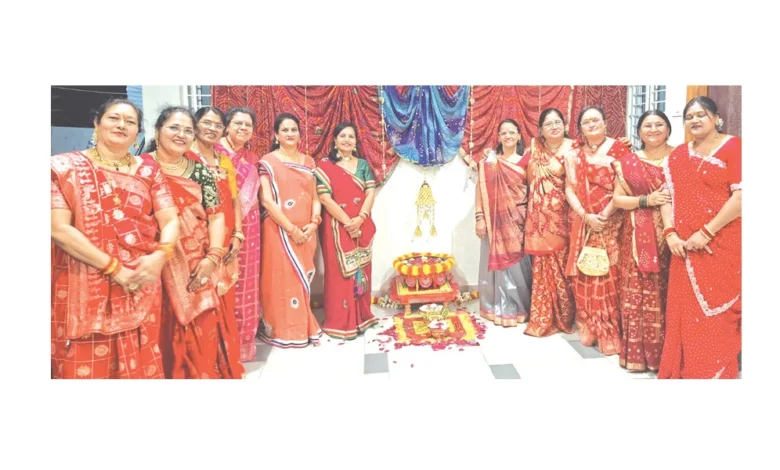 * गुजराती परिधान में सज धज कर शामिल हुई सखियां