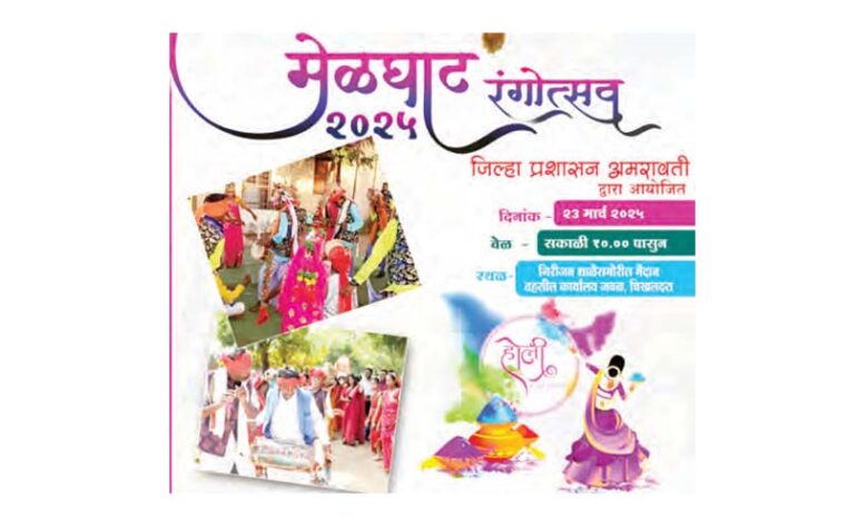 चिखलदरा/दि.17-मेलघाट का सबसे महत्वपूर्ण उत्सव रहने वाले होली व रंगपंचमी निमित्त बाहरगांव गए मेलघाट के नागरिक अपने मूल गांव लौटते है. इन सभी नागरिकों को अत्यावश्यक सेवा सुविधा उपलब्ध करवाना और सांस्कृतिक कार्यक्रम आयोजित करने क लिए मेलघाट रंगोत्सव 2025 का आयोजन जिला प्रशासन की ओर से किया है. इस रंगोत्सव में मेलघाट के सभी नागरिकों ने बडी संख्या में और बडे ही उत्साह से सहभागी होने का आह्वान जिला परिषद की मुख्य कार्यकारी अधिकारी संजीता महापात्रा ने किया है. 23 मार्च को सुबह 10 से शाम तक एक दिवसीय मेलघाट रंगोत्सव का आयोजन गिरीजन स्कूल के मैदान, तहसील कार्यालय के पास चिखलदरा में आयोजित किया है.