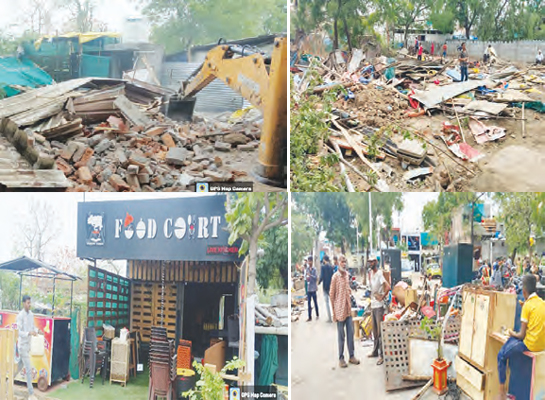 * कैफे, गैरेज सहित 10 से 12 झोपडियां ध्वस्त की