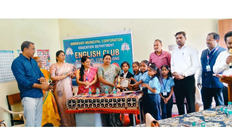 अमरावती/दि.10- अमरावती महानगरपालिका के शिक्षा विभाग द्वारा आयोजित मनपा स्तरीय इंग्लिश क्लब प्रतियोगिता एवं पुरस्कार वितरण समारोह उत्साहपूर्ण वातावरण में संपन्न हुआ. इस पहल का उद्देश्य मनपा शालाओं के विद्यार्थियों में अंग्रेजी भाषा के प्रति आत्मविश्वास बढ़ाना और प्रभावी संवाद कौशल विकसित करना है.