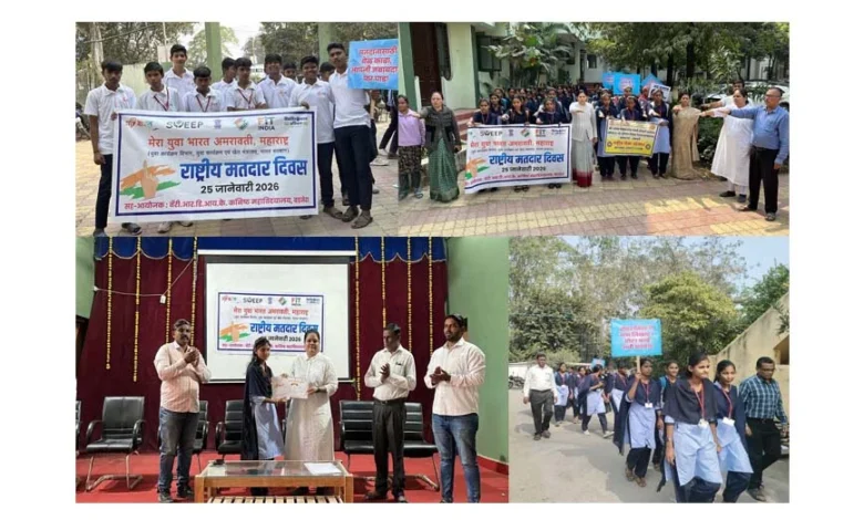 अमरावती/दि.27 -पूरे देश में 25 जनवरी को राष्ट्रीय मतदाता दिवस मनाया. मतदाता दिवस के उपलक्ष्य में मतदाताओं में मतदान के बारे में जनजागरूकता हो, लोकतंत्र मजबूत हो तथा सभी को अपने मताधिकार का महत्व समझने के लिए मेरा युवा भारत अमरावती, युवा कार्यक्रम एवं खेल मंत्रालय, भारत सरकार व बॅरि. आर.डी.आय.के महाविद्यालय बडनेरा के संयुक्त तत्वावधान में बडनेरा में मतदाता जनजागृति रैली का आयोजन किया गया था. इस रैली में सहभागी छात्रों ने विविध स्लोगन देकर मतदाताओं को मतदान के लिए प्रोत्साहित किया. कार्यक्रम में मेरा युवा भारत अमरावती की जिला युवा अधिकारी स्नेहल बासुतकर, महाविद्यालय के प्राचार्य डॉ. आर. डी. देशमुख, प्रा. अतुल पाटील, प्रा. संजय थोरात, प्रा.संचिता पिंपले, प्रा. भावना खोब्रागडे, प्रा. दयावते, प्रा.अंकुश मानकर, सागर आगरकर सहित महाविद्यालय के सभी प्राध्यापक व कर्मचारी उपस्थित थे. मतदाताओं को मतदान के लिए प्रोत्साहित करने के लिए निकाली गई इस रैली में छात्रों ने स्लोगन फलक द्वारा नागरिकों में जनजागृति की तथा पथनाट्य के माध्यम से मतदान का महत्व समझाया.