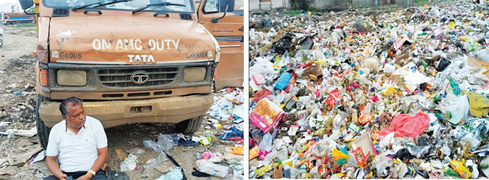 मोहम्मद जाकिर का कचरे से भरे ट्रक के सामने ठिया आंदोलन