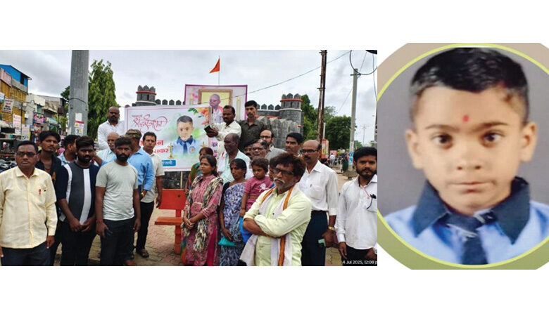 अकोट/ दि.5– कक्षा 9 वीं में पढनेवाले दर्शन वैभव पलसकर नामक बालक की सौतेले पिता द्बारा हत्या किए जाने के प्रकरण में नाभीक समाज की तरफ से तीव्र निषेध किया गया है. शिवाजी महाराज चौक पर सर्वदलीय निषेध सभा आयोजित की गई थी. इस सभा में और मोर्चे ने नाभीक समाज में समर्थ देकर इस घटना का निषेध करते हुए आरोपी को फांसी की सजा देने की मांग की है. दर्शन पलसकर नामक 13 वर्षीय बालक अकोट में शिक्षण के लिए अपनी मां और सौतेले पिता के साथ रहता था. गरीब परिस्थिति में पहले पति से दर्शन की मां को दो संताने हुई थी. दर्शन की मां ने दूसरा विवाह किया था. सौतेले पिता ने कुछ दिनों तक बच्चों को अच्छी तरह रखा. लेकिन भविष्य में दर्शन अपनी संपत्ति पर अधिकार दिखाएगा, ऐसा खत्रा निर्माण होने से वैभव पलसकर ने दर्शन को अगवा कर लिया और अपने साथियों के साथ मिलकर उसकी हत्या कर दी. इस घटना से अकोट तहसील में हडकंप मच गया था. सौतेला पिता ही मुख्य सूत्रधार रहने का पता चलते ही सभी ने इस घटना की कडी निंदा की. शुक्रवार 4 जुलाई को स्थानीय शिवाजी महाराज चौक में निषेध मोर्चा निकाला गया. साथ ही सभा भी ली गई. निषेध मोर्चा संत सेना महाराज शैक्षणिक व सामाजिक संस्था के अध्यक्ष तथा नाभीक समाज के अध्यक्ष संजयभाई के नेतृत्व में निकाला गया. नाभीक समाज ने सर्वदलीय संगठना को भी समर्थन दिया. इस मोर्चे में समर्थन देनेवाले जिलाध्यक्ष संजय भट्टी, संतोष हिरपुरकर, राजेश डांगटे, अनिकेत अंबुलकर, नरेंद्र महासागर, संतोष चोंडेकर, गजानन शिंगणारे, सुरेश अंबुलकर , अनिल सावरकर, मनोज पलसकर व दर्शन के चाचा- चाची सहित रिश्तेदार शामील हुए थे.