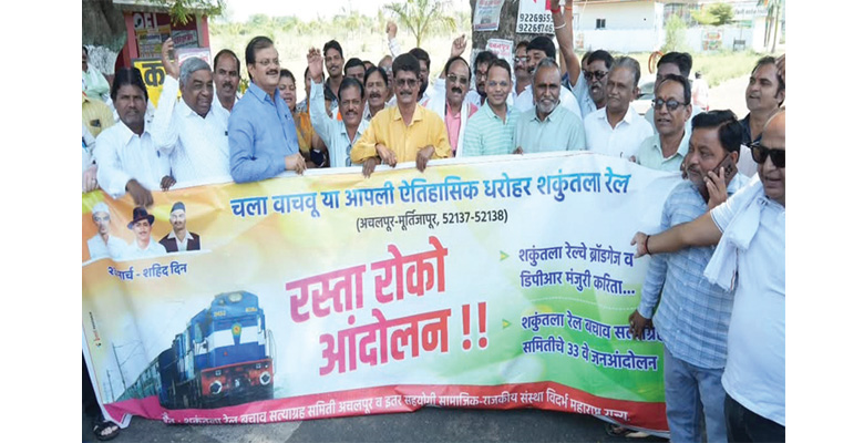 उल्लेखनीय है कि, शकुंतला रेल बचाओ समिति का लोकतांत्रिक मार्ग से यह शांतिपूर्ण संघर्ष पिछले काफी साल से शुरु है. अब तक 32 आंदोलनों के जरिए सरकार तक अपनी मांग पहुंचाने का प्रयास किया जा चुका है. समिति का कहना है कि, भारत की आजादी के दशकों बाद भी शकुंतला ट्रेन जैसी महत्वपूर्ण परिवहन सेवा को बंद रखना ग्रामीण जनता, किसान, विद्यार्थी, व्यापारी और मजदूरों के लिए अन्यायपूर्ण इसलिए इस बार समिति ने शहीद दिवस को संघर्ष का माध्यम बनाते हुए आक्रामक रुख अपनाया और चक्काजाम आंदोलन किया. रविवार 23 मार्च को सुबह 10 बजे आंदोलन की शुरुआत शहीद भगतसिंह, राजगुरु और सुखदेव की प्रतिमा पर पुष्पांजलि अर्पित कर हुई. पश्चात अमरावती-परतवाडा मार्ग पर चक्काजाम कर सरकार से जल्द से जल्द शकुंतला रेल्वे को शुरु करने की मांग की गई. आंदोलन में विभिन्न राजनीतिक और सामाजिक संगठनों के पदाधिकारी शामिल हुए. इस अवसर पर शकुंतला रेल्वे बचाओ समिति के सदस्य योगेश खानजोडे, गजानन कोल्हे, डॉ. नीलेश तारे, कचरु सेठ पटवारी, राजाभाउ धर्माधिकारी, राजेश अग्रवाल, संजय डोंगरे, दीपा तायडे, शारदा उईके, उज्वला माकोडे, दयाराम चंदेल, राजेंद्र पांडे, किरण गवई, एस. बी. बरखडे, विजय गोेंडचवार, राजेंद्र जायस्वाल, वसंतराव धोबे उपस्थित थे. आंदोलन को समर्थन देने वालों में क्रांति ज्योति संगठन, शिवसेना उबाठा गुट, आजादी बचाओ आंदोलन, अचलपुर स्टोन क्रशर एसोसिएशन, शकुंतला रेल समिति यवतमाल और ऑल ट्रेडर्स एसोसिएशन शामिल थे.