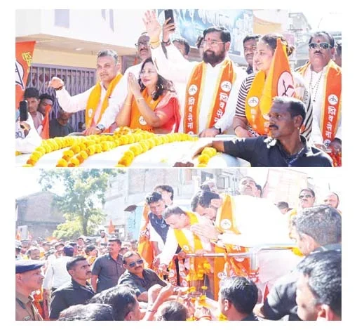 उपमुख्यमंत्री एकनाथ शिंदे का आज सुबह अमरावती हवाई अड्डे पर आगमन होने के बाद वे हेलीकॉप्टर से दोपहर 12.30 बजे अंजनगांव सुर्जी पहुंचे. सारडा महाविद्यालय के भव्य प्रांगण में उनका हेलीकॉप्टर से आगमन होते ही उनका पूर्व सांसद आनंदाव अडसूल, पूर्व विधायक कैप्टन अभिजीत अडसूल, ज्ञानेश्वर धाने पाटिल, पार्टी की उपनेता प्रीती बंड, जिला प्रमुख श्याम देशमुख ने स्वागत किया. पश्चात तत्काल सुर्जी परिसर के द्बारका चौक से उनका रोड शो शुरू हुआ. यह रैली पानअटाई चौक पर पहुंचने के बाद प्रचार सभा में परिवर्तित हुई. इस अवसर पर कोई भी औपचारिकता न करते हुए उपमुख्यमंत्री एकनाथ शिंदे ने हजारों की संख्या में उपस्थित कार्यकर्ताओं को संबोधित किया.