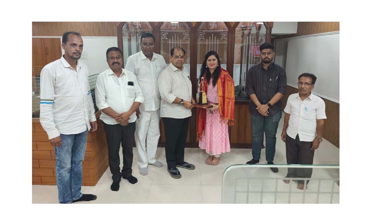 अमरावती/दि.6-पद्मश्री पुरस्कार से सम्मानित तथा अमरावती के आरोग्य विभाग में नोडल अधिकारी पद पर कार्यरत डॉ. कंचन खुशालराव जवंजाल ने हाल ही में पूर्व विधायक प्रवीण पोटे पाटिल के जनसंपर्क कार्यालय में सदिच्छा भेंट दी. इस अवसर पर प्रवीण पोटे पाटिल ने डॉ. कंचन जवंजाल का शाल, श्रीफल व सम्मानचिन्ह देकर सत्कार किया.
