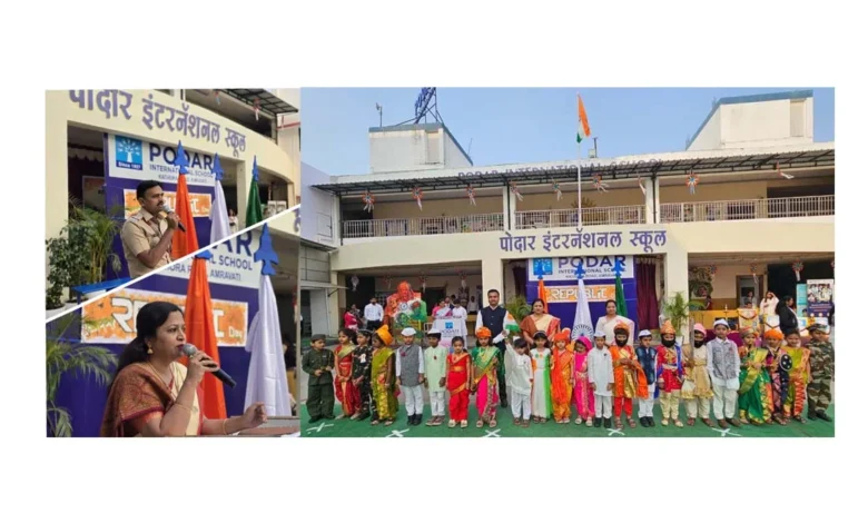 अमरावती/दि.27 -स्थानिय पोदार इंटरनॅशनल स्कूल कठोरा रोड अमरावती में भारतीय गणतंत्र दिन हर्षोल्हास से मनाया गया. कार्यक्रम में प्रमुख अतिथी के तौर पर नांदगाव पेठ पुलिस स्टेशन के वरिष्ठ पुलिसोलीस निरीक्षक श्री. दिनेश दहातोंडे विशेष रूप से उपस्थित रहे. दिनविशेष की शुरआत प्रमुख अतिथी व्दारा ध्वजारोहन से करते हुए तत्पश्चात भारत माता, डॉ. बाबासाहेब आंबेडकर तथा महात्मा गांधीजी की प्रतिमाओं को माल्यार्पण से की गई. तत्पश्चात आफ्टरनुन शिफ्ट के कक्षा पाचवी के छात्रों व्दारा कवायत प्रदर्शित की गई. डान्स परफॉरमन्स हेतू मार्गशी देशमुख तथा शौर्यराज करे ने अपनी प्रतिभा से उपस्थितों को रिझाया. इसके साथ साथ मॉर्निंग शिफ्ट से कक्षा छटवी तथा आफ्टरनून शिफ्ट के कक्षा पाचवी के छात्रों ने नृत्य प्रस्तुती दी. उपरान्त छात्रों व्दारा ऐ वतन वतन आझाद रहे तू, आझाद रहे, आबाद रहे जैसे गाने गाकर उपस्थितों को भावविभोर किया. सुत्रसंचालन जितेंद्र बुटे एवम् श्वेता ढवले तथा कक्षा नववी से आराध्या भगत एवम् विराज मालोकार ने किया।.