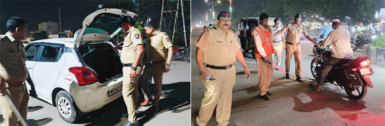 अमरावती/ दि. 12- जनप्रतिनिधियों और राजनैतिक दलों के पदाधिकारियों द्बारा टारगेट बनाए जा रहे पुलिस दल ने शुक्रवार रात अचानक आयुक्तालय के सभी 10 थाना क्षेत्रों में जोरदार कॉम्बिंग ऑपरेशन चलाकर बडी मात्रा में हथियार और अवैध शराब जब्त की. दो दर्जन से अधिक स्थानों पर रेड की गई. उसी प्रकार 20 से अधिक जगह नाकाबंदी कर वाहनों और फोरव्हीलर्स की कडी जांच की गई. यह ऑपरेशन सीपी अरविंद चावरिया के मार्गदर्शन में डीसीपी गणेश शिंदे ने ऑन रोड रहकर सारी रात चलाया. शिंदे स्वयं पूरे ऑपरेशन दौरान मौजूद रहे. पुलिस की अचानक कार्रवाई से गुंडे बदमाशों में खलबली मची. वहीं आम लोगों के भी वाहनों की पुलिस ने जगह- जगह तलाशी ली.