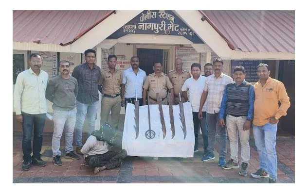 अमरावती/दि.25- नागपुरी गेट थाने की डीबी टीम ने आज पूर्वान्ह 11.30 बजे रहमान नगर में छापा मारकर आरोपी अमीन खान आशीक खान को गिरफ्तार किया. उससे चार खतरनाक तलवारे, एक भयानक भाला और दो चाइना चाकू जब्त किए गए. मनपा चुनाव की प्रक्रिया जारी रहते पुलिस की अवैध हथियारो के विरोध में यह दबीश बताई जा रही है. यह कार्रवाई सीपी राकेश ओला और डीसीपी गणेश शिंदे, एसीपी शिवाजी बचाटे, थानेदार उरलागोंडावार के मार्गदर्शन में की गई. इस कार्रवाई से शस्त्रो सौदागरो में खलबली मची है.