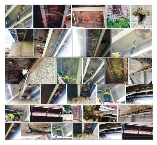 – सीमेंट से बन स्लैब तथा पथरिली दीवार को आपस में लोहे के गर्डर से जोडनेवाले हिस्से में पडी दरारे तथा जल रिसाव के निशान.