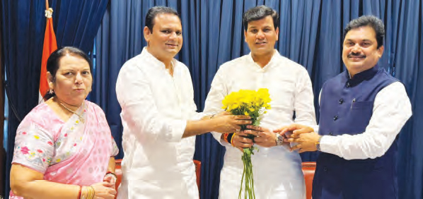 अमरावती/दि.20 – विधायक रवि राणा की आश्वासन समिति के अध्यक्ष पद पर नियुक्ति होने पर विधानसभा अध्यक्ष राहुल नार्वेकर, विधान परिषद सभापति राम शिंदे और विधान परिषद उपसभापति डॉ. निलमताई गोर्हे ने पुष्पगुच्छ देकर स्वागत कर उनका अभिनंदन किया. इस कार्यक्रम में मुख्यमंत्री देवेंद्र फडणवीस, उपमुख्यमंत्री एकनाथ शिंदे, उपाध्यक्ष अन्ना बनसोडे, राज्यमंत्री आशीष जयस्वाल, विधानसभा सचिव जितेंद्र भोले, विलास आठवले, सचिन मेघना तलेकर आदि उपस्थित थे.