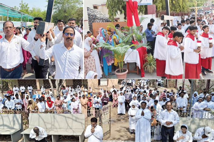 अमरावती/ दि. 18 – गुड फ्राइडे निमित्त आज सेंट फ्रांसिस झेवियर कॅथेड्रल चर्च बिशप हाउस में पवित्र क्रॉस की रैली आयोजित की गई. बिशप हाउस कैम्पस में 14 स्थानों पर जाकर प्रभु यीशु के दु:ख को सहन करने निमित्त प्रार्थना की गई. इस समय अमरावती धर्मप्रांत के महागुरू स्वामी बिशप मालकम सिक्वेरा, फादर रमशीन (विकर जनरल), फादर ओनील, फादर लॉरेन्स, सभी धर्म गुरू, सभी धर्म भगिनी और बडी संख्या में श्रध्दालु उपस्थित थे. आज के पवित्र शुक्रवार उपलक्ष्य सभी ने बडे भक्तिभाव से पवित्र क्रॉस की भक्ति में सहभाग किया.