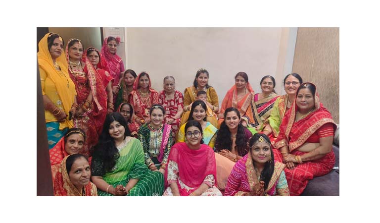 लखारा गली में धारवाले के यहां जुटी सौभाग्यवतियां
