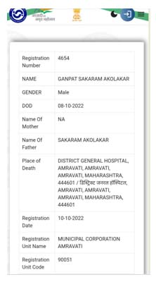 इसके साथ ही मनपा आयुक्त सौम्या शर्मा व अतिरिक्त आयुक्त शिल्पा नाईक के निर्देश पर मनपा के जन्म-मृत्यु विभाग की उपनिबंधक प्रतिभा आत्राम ने यह चेतावनी भी जारी की है कि, यदि तय अवधि के भीतर सभी क्षेत्रीय अधिकारियों व कर्मचारियों सहित डेटा ऑपरेटरों की ओर से लिखित तौर पर संतोषजनक जवाब प्राप्त नहीं होते है, तो संबंधितों के खिलाफ अपराधिक मामला दर्ज करने के साथ ही उनके खिलाफ निलंबन की कार्रवाई भी की जा सकती है. ऐसे में इस समय मनपा के जन्म-मृत्यु पंजीयन विभाग में गणपत सकाराम अकोलकर नामक व्यक्ति के मृत्यु प्रमाणपत्र की वजह से अच्छा-खासा हडकंप व्याप्त है.