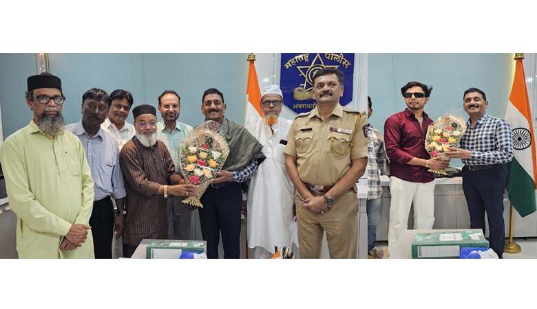 अमरावती/ दि. 9 – सिरतुन्नबी कमेटी की ओर से आज पुलिस आयुक्त अरविंद चावरिया का सत्कार कर उनका आभार माना गया. उसी प्रकार डीसीपी गणेश शिंदे, डीसीपी श्याम घुगे और डीसीपी रमेश धुमाल का भी कमेटी ने सत्कार और स्वागत किया. यह सत्कार गत 5 सितंबर को ईद ए-मिलाद के जुलूस के शांतिपूर्ण संपन्न होने और इस दौरान पुलिस का बराबर बंदोबस्त व योगदान होने के लिए किया गया.