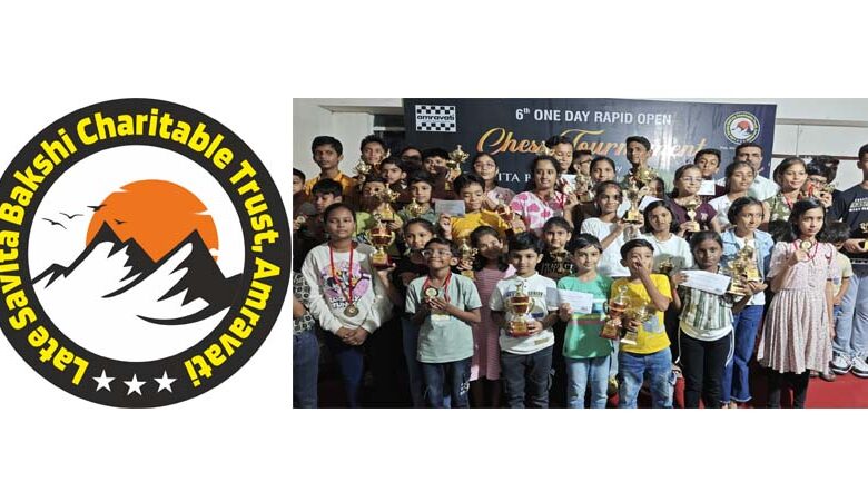 अमरावती /दि. 26 – स्व. सविता बक्शी चैरिटेबल ट्रस्ट के तत्वावधान में 24 अगस्त 2025 को अमरावती के संत ज्ञानेश्वर सांस्कृतिक भवन में छठवीं एक दिवसीय ओपन रैपिड शतरंज प्रतियोगिता उत्साहपूर्वक संपन्न हुई. विभिन्न आयु वर्गों के बड़ी संख्या में खिलाड़ियों ने इसमें सहभागिता की.