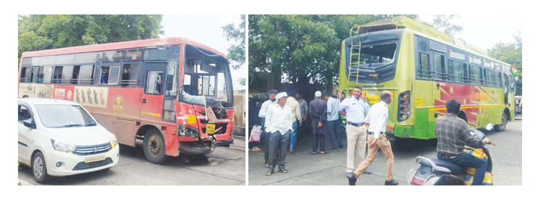 * एसटी बस का अगला व निजी बस का पिछला हिस्सा चकनाचूर