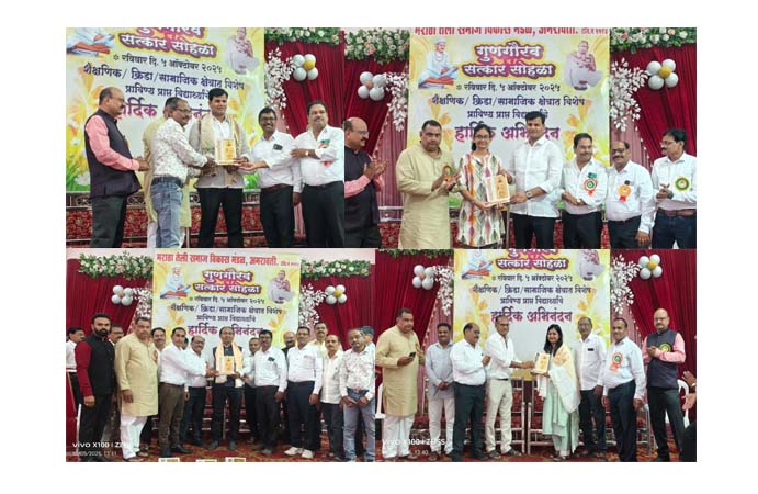 अमरावती /दि.7 – मराठा तेली समाज विकास मंडल की ओर से स्थानीय हर्ष मंगलम शंकर नगर यहां राज्यस्तरीय समाज गौरव पुरस्कार, दशहरा मिलन और प्रवाीण्य प्राप्त विद्यार्थियों के सत्कार समारोह किया गया था. कार्यक्रम की शुरूआत संत शिरोमणी संताजी जगनाडे महाराज व संत श्री एकनाथ महाराज की प्रतिमा का पुजन व दिप प्रज्वलन से कि गई.