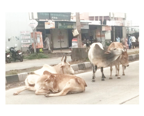 शहर की मुख्य सडकों पर आवारा पशुओं को डेरा