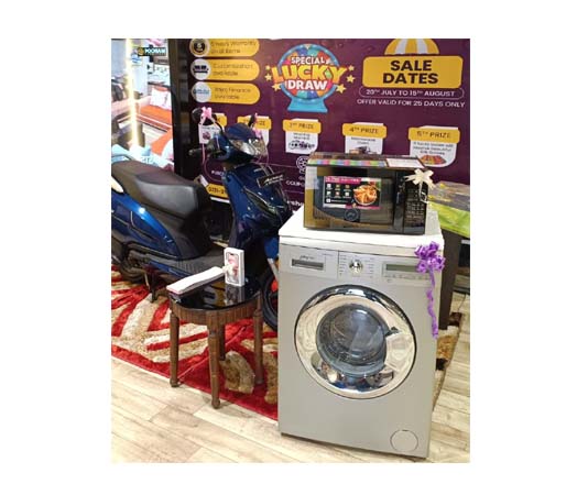 लकी ड्रॉ में विजेता को प्रथम पुरस्कार के रूप में एक्टीवा टूव्हीलर, द्बितीय पुरस्कार आयफोन, तृतीय पुरस्का फ्रंट लोड ऑटोमेटिक वाशिंग मशीन और चतुर्थ पुरस्कार मायक्रो वेव ओवन तथा 11 विजेताओं को साडियां गिफ्ट दी जायेगी.