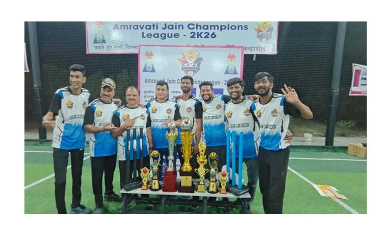 अमरावती/दि.4 – सकल दिगंबर जैन समाज की ओर से पहली बार आयोजित एजेसीएल (ऑल जैन क्रिकेट लीग) में साई नगर स्थित सुपार्श्वनाथ दिगंबर जैन मंदिर की टीम सुपार्श्व वॉरियर्स ने शानदार प्रदर्शन करते हुए खिताब पर कब्जा जमाया. टीम ने फाइनल मुकाबला 29 रनों से जीतकर लीग की निर्विवाद चैंपियन बनने का गौरव प्राप्त किया.