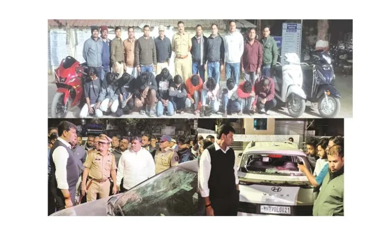 जानकारी के मुताबिक गत रात 9 से 10 बजे के दौरान 25 से 30 युवक दुपहिया पर सवार होकर शंकर नगर रोड पर पहुंचे. इन युवकों के हाथों में तलवारे और चाकू थे. शंकर नगर रोड पर पहुंचते ही इन हुडदंगियों ने जमकर उत्पात मचाना शुरू कर दिया. शुरूआत में इन्होंने स्वस्तिक नगर रोड, नवाथे और गोपाल नगर में ही आतंक मचाया. पश्चात शंकर नगर रोड पर पहुंचकर खुले प्रतिष्ठानों को बंद करने की चेतावनी देते हुए सडकों पर खडे वाहनों की तोडफोड शुरू कर दी और जमकर गालीगलौच करते हुए मारपीट पर उतारू हो गए. चार कार की तोडफोड करने के बाद परिसर में युवकों की उत्पात को देखते हुए अफरातफरी मच गई. सभी तरफ दहशत का वातावरण था. लोग अपनी जान बचाने के लिए इधर-उधर भागने लगे थे. अचानक हुए इस उत्पात से व्यापारी और स्थानीय नागरिकों में भय का वातावरण था. घटना की सूचना मिलते ही राजापेठ के थानेदार पुनित कुलट अपने दल के साथ घटनास्थल पर पहुंच गए. साथ ही क्राइम ब्रांच के निरीक्षक संदीप चव्हाण के नेतृत्ववाला दल भी वहां पहुंच गया. पुलिस के पहुंचते ही बाईक पर सवार दंगाईयों में भगदड मच गर्ई. पुलिस ने परिसर में सीसीटीवी फुटेज खंगालते हुए आरोपियों की सरगर्मी से तलाश शुरू कर दी. रात को कडी ठंड में भी सभी तरफ दहशत का वातावरण था. पुलिस ने देर रात तक सर्च ऑपरेशन चलाते हुए 17 आरोपियों को हिरासत में ले लिया. पुलिस के अनुसार कुछ आरोपी अभी भी फरार है. जिनकी तलाश में छापेमारी शुरू हैं. सुरक्षा की दृष्टि से पुलिस ने पूरी रात परिसर में पुलिस बंदोबस्त तैनात रखा था.