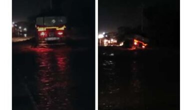 भारी बारिश का कहर, पेट्रोल टैंकर नाले में बहा, बडा हादसा टला