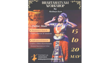 15 से 20 मई तक भरतनाट्यम कार्यशाला