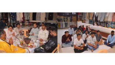 अमरावती– विदर्भ विख्यात कपडा शोरूम आराधना में लक्ष्मीपूजन और दीप पूजन करते हबलानी बंधु.