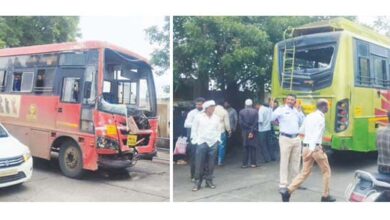 * मालटेकडी से बस स्टैंड की ओर आनेवाली सडक पर हुई दुर्घटना * एसटी बस का अगला व निजी बस…