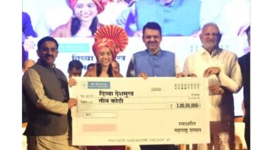 ग्रैंड मास्टर दिव्या देशमुख को शासन की तरफ से 3 करोड रुपए का पुरस्कार