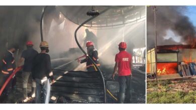 * सूचना मिलते ही दमकल दस्ते तुरंत पहुंचे मौके पर * 12 दमकल वाहनों से पानी मारकर बुझाई गई आग…
