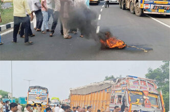 * दोनों ओर वाहनों की लगी लंबी-लंबी कतारें, काफी देर रुका रहा ट्रैफिक * अचानक शुरु हुए आंदोलन की जानकारी…