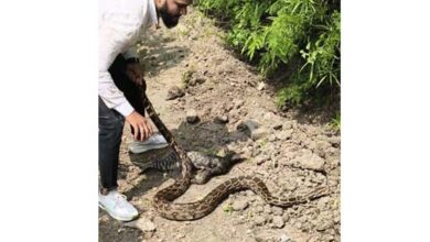 सर्पमित्रो ने आठ फुट के अजगर को पकडकर सुरक्षित छोडा