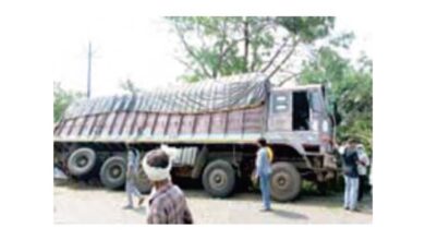 मालवाहक ट्रक बेरिकेट्स से टकराकर हुआ पलटी