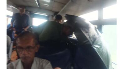 रापनि बस में छाता लगाकर करनी पड रही यात्रा
