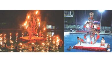 रोमहर्षक : पानी पर जलती मशाल, तैरता मल्लखंभ