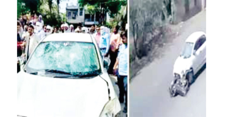 * संतप्त नागरिकों ने की कार की तोडफोड